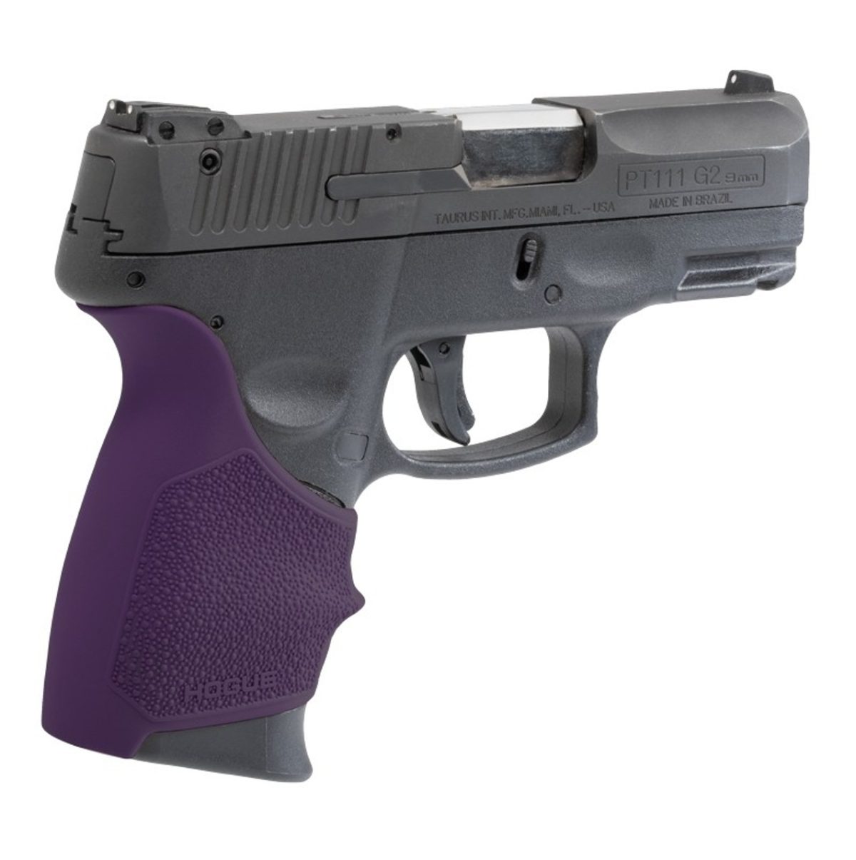 SPECS: – Precision fit for Taurus® G2c, G3c, PT111 Millennium G2 – Material: Rubber• Texture: Cobblestone™• Color: Purple FEATURES: – Gentle palm swells fit comfortably in hand – Finger grooves naturally position fingers for optimal grip – Textured with Hogue’s famous Cobblestone pattern for increased comfort and grip – Beavertail™ cushions the hand on recoil and offers increased hand comfort higher on the grip – Made from long-lasting durable thermoplastic elastomer that ages gracefully for years of service – Designed for a tight and secure fit engaging with the texture and contours of the firearm’s frame
